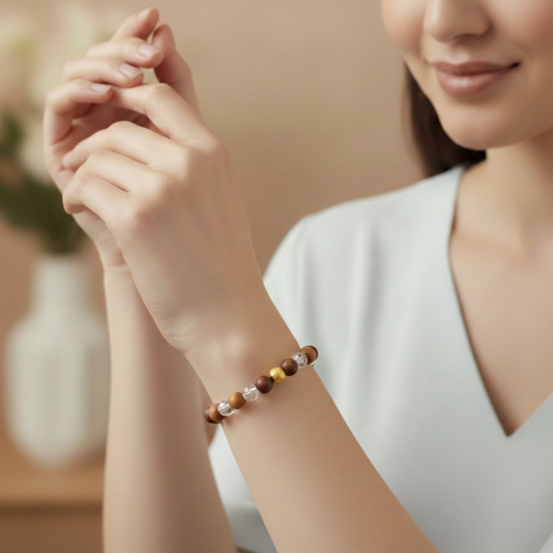 Sandalwood and Clear Crystal Bracelet (Diamond Cut) Original price was: ₹1,500.00.Current price is: ₹642.00. Add to cart