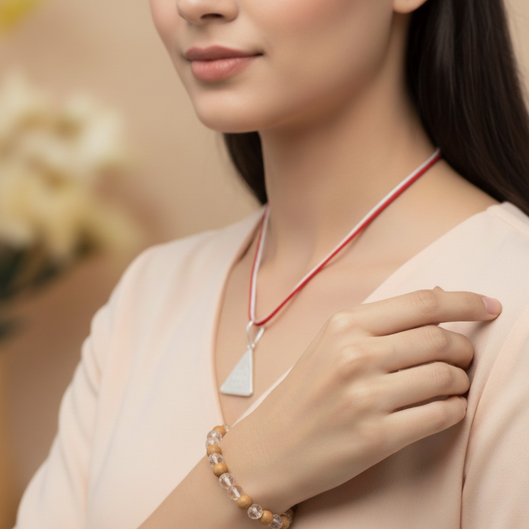 Pyra Yantra Silver Locket and Wood & Clear Crystal Bracelet Combo