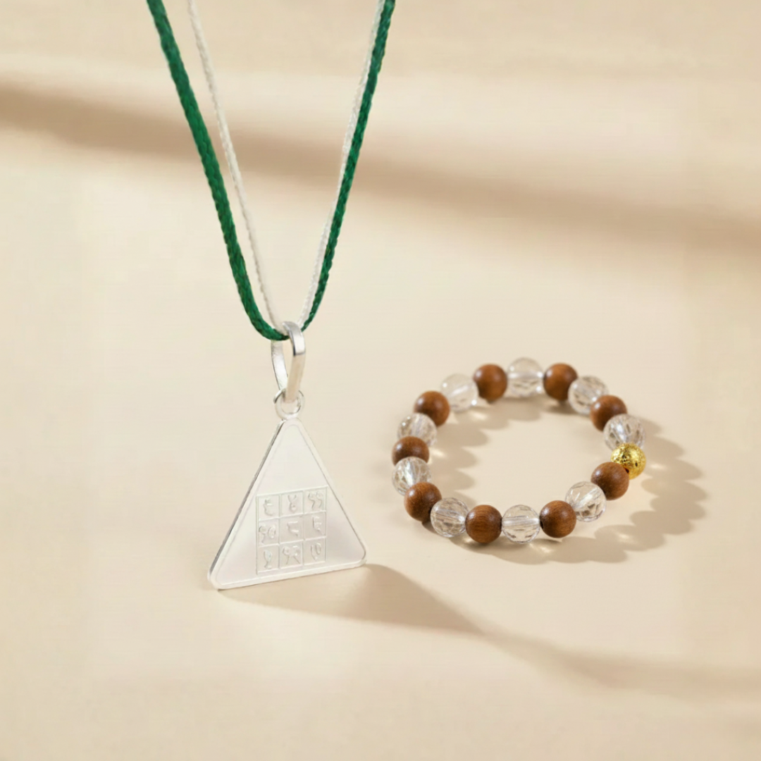 Budh Yantra Silver Locket and Wood & Clear Crystal Bracelet Combo Original price was: ₹4,000.00.Current price is: ₹2,490.00. Add to cart