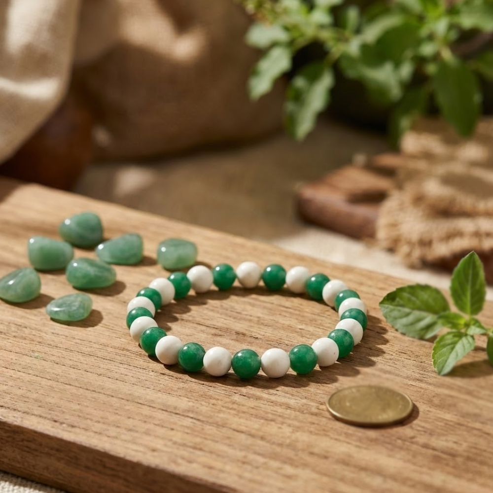 - Crystal Healing: Green Aventurine supports abundance & heart chakra healing, while Tulsi offers spiritual protection & purification