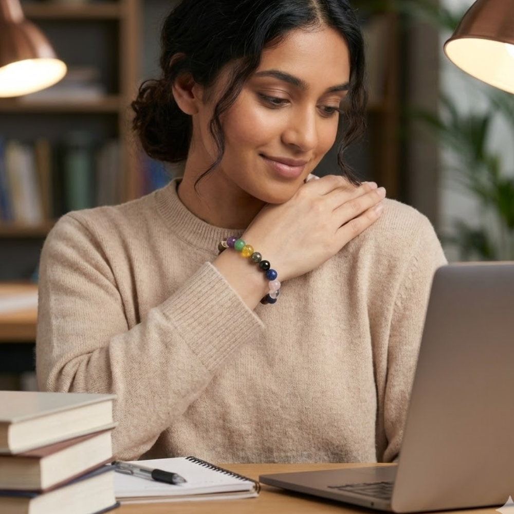 The Examination Success Bracelet by Vastu Yantra is a sacred and energizing accessory designed to assist students in achieving academic success. Created using carefully selected natural healing stones and energized through Vedic rituals, this bracelet works on both the mental and spiritual levels to help improve concentration, memory, and clarity of thought. Whether you are preparing for school exams, university entrance tests, or competitive professional exams, this bracelet offers the extra edge you need to perform at your best.
