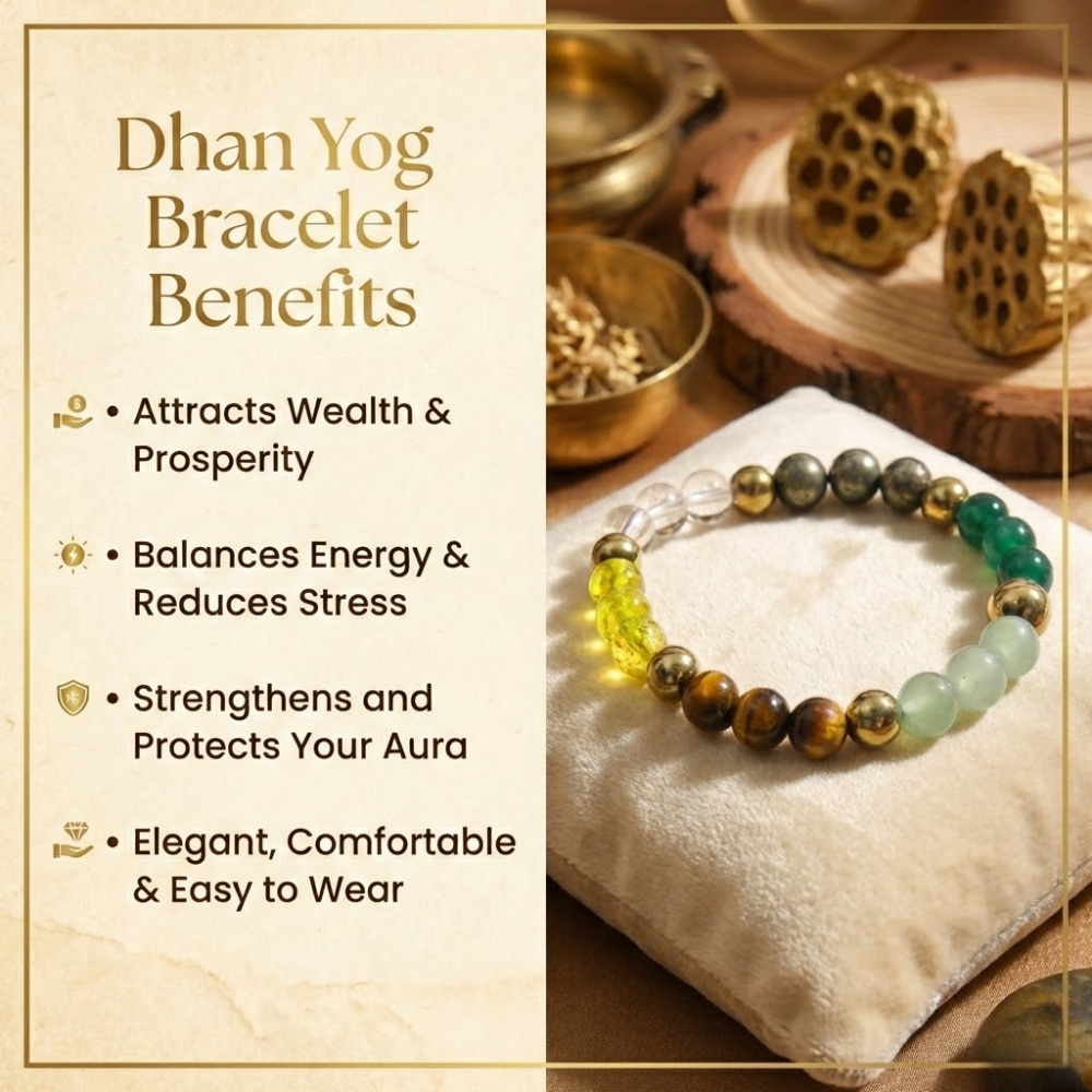- Benefits: Attract wealth, boost confidence, and enhance positive energy with the powerful Dhan Yog Bracelet.