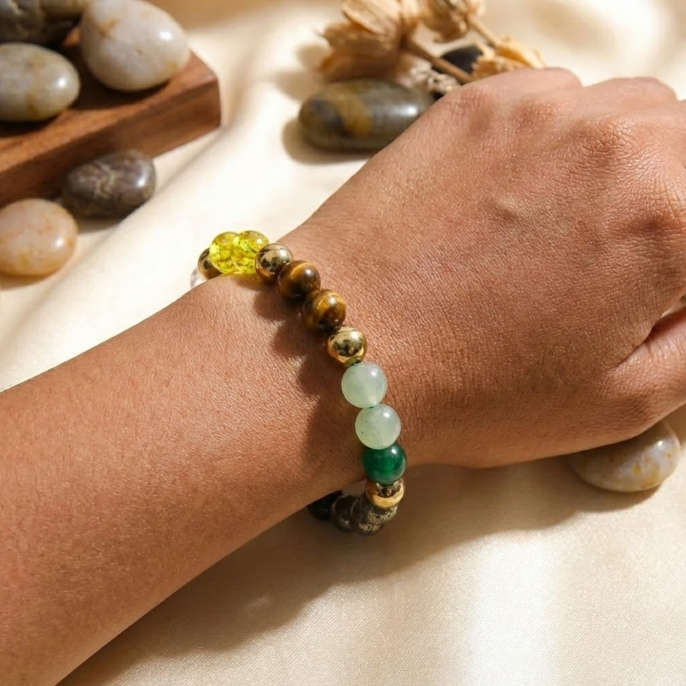 Success begins with mindset. This bracelet helps empower you with renewed confidence, mental clarity, and motivation. The synergistic energy of the stones works to reduce self-doubt, fear, and anxiety, encouraging bold decisions, persistence, and focus—especially beneficial for entrepreneurs, professionals, and individuals striving for financial growth.