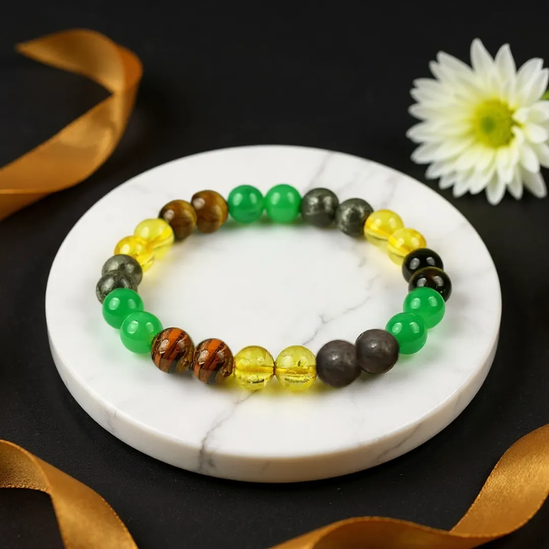 Each bead—Citrine, Pyrite, Green Aventurine, and Tiger Eye—is known for attracting money, luck, and career growth. Together, they create a strong energy field for prosperity.