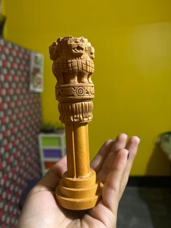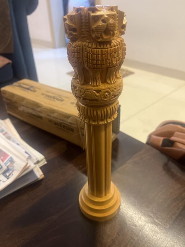 The Wood Ashok Stambh 6 Inch Handcrafted Showpiece looks elegant and gives a patriotic vibe to my office space.