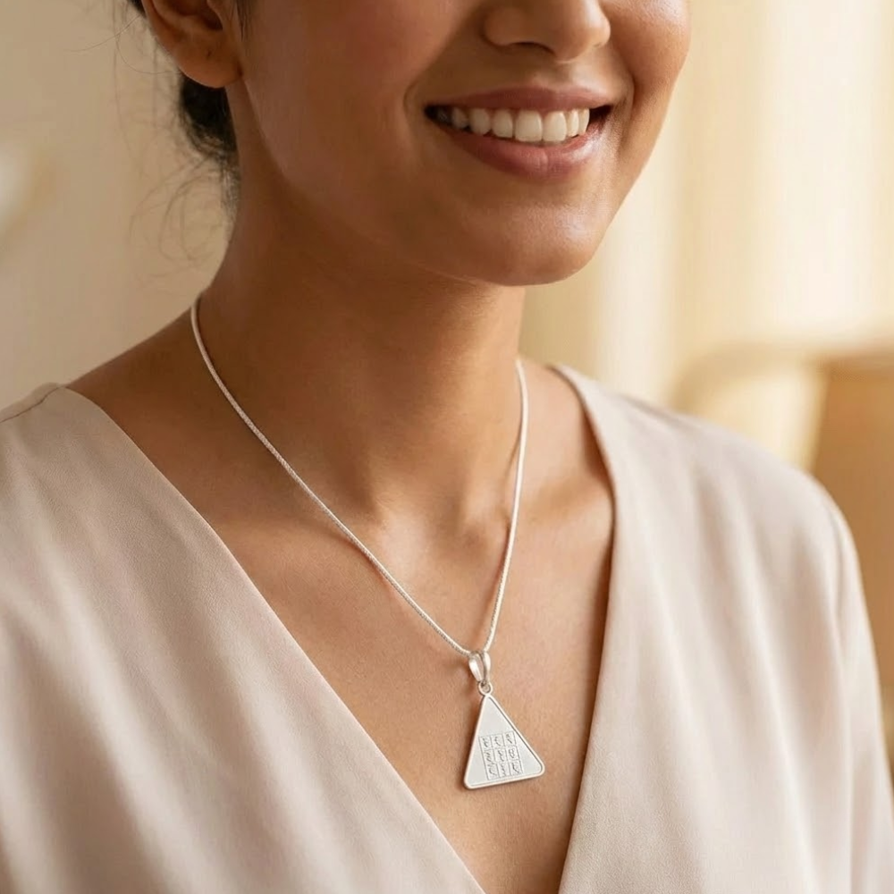- Budh Yantra Silver Locket (Pure Silver, Triangle) – Enhances intellect, and wealth & offers spiritual protection.